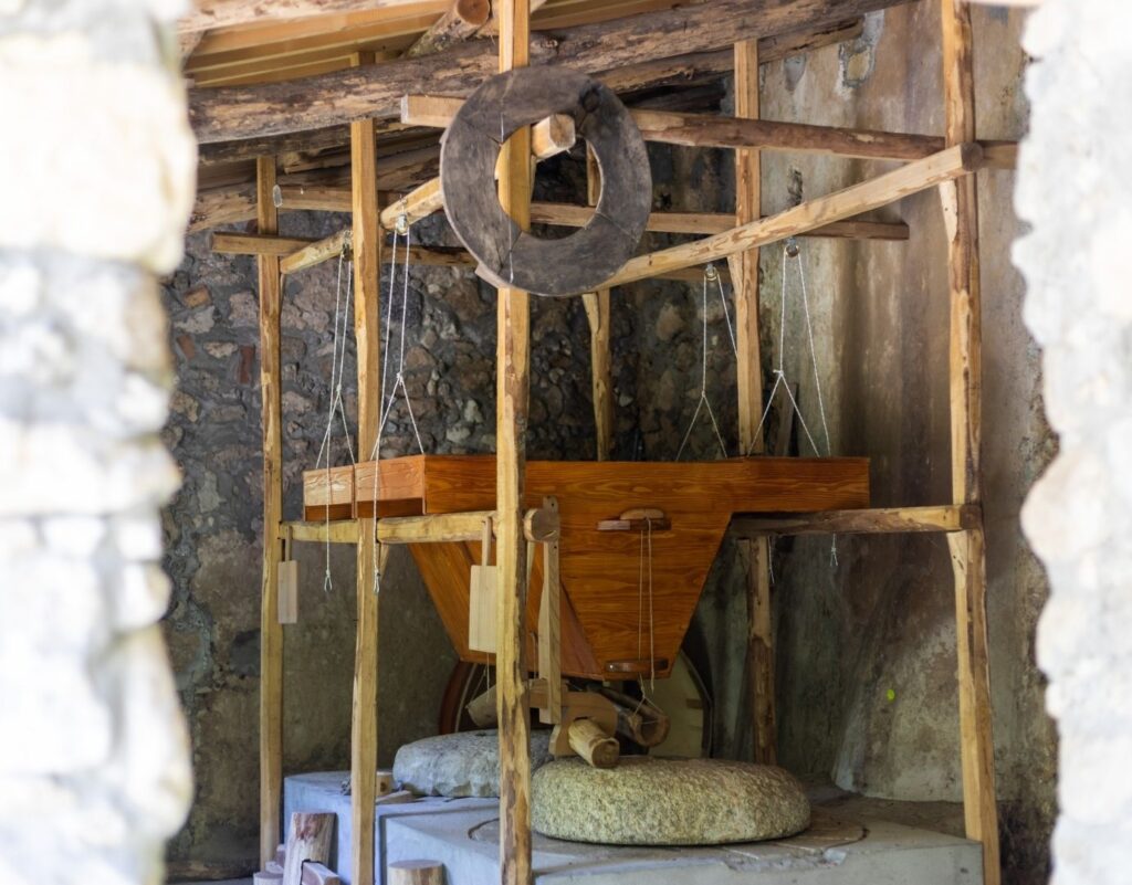 Nei mulini si macinavano sia il grano bianco (frumento duro) che il grano nero (orzo, avena, mais), utilizzando pietre diverse. Fondamentali erano anche asini e muli, veri protagonisti del trasporto, condotti da giovani garzoni di famiglia, custodi di un mestiere antico fatto di precisione, fatica e profondo legame con il territorio.